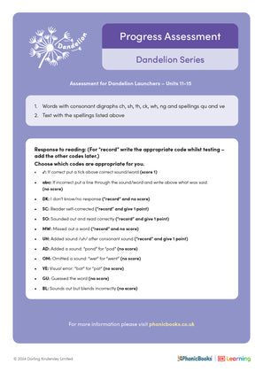 Read the Teacher Guidance Notes below, then use the diagnostic assessment to figure out which series to use. The Dandelion progress assessments can be used alongside the books in our Dandelion Launchers and Dandelion Readers series to evaluate progress over time.